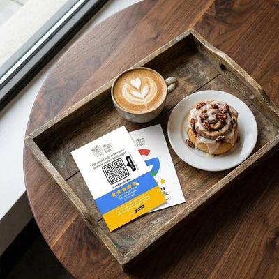 "Endlich eine Lösung, die nicht wie billige Werbung aussieht. Die Karten sind elegant, langlebig und passen tatsächlich zu unserer Tischdeko. Eine professionelle Art, um Feedback zu bitten, ohne aufdringlich zu sein."
